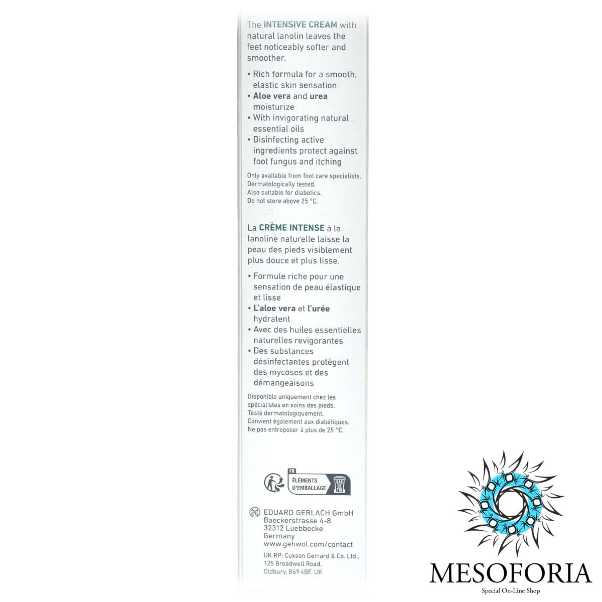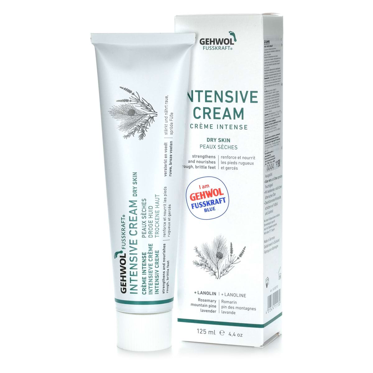 Голубой бальзам Fusskraft Blau Gehwol содержит ланолин в сочетании с алое-вера и мочевиной, которые обеспечивают необходимый уход за сухой, грубой и потрескавшейся кожей ног. Нормализует потоотделение и избавляет от неприятного запаха пота. Натуральные эфирные масла из розмарина, горной сосны и лаванды, камфара и охлаждающий ментол сразу же снимают ощущение жжения, тяжесть и боли в ногах.