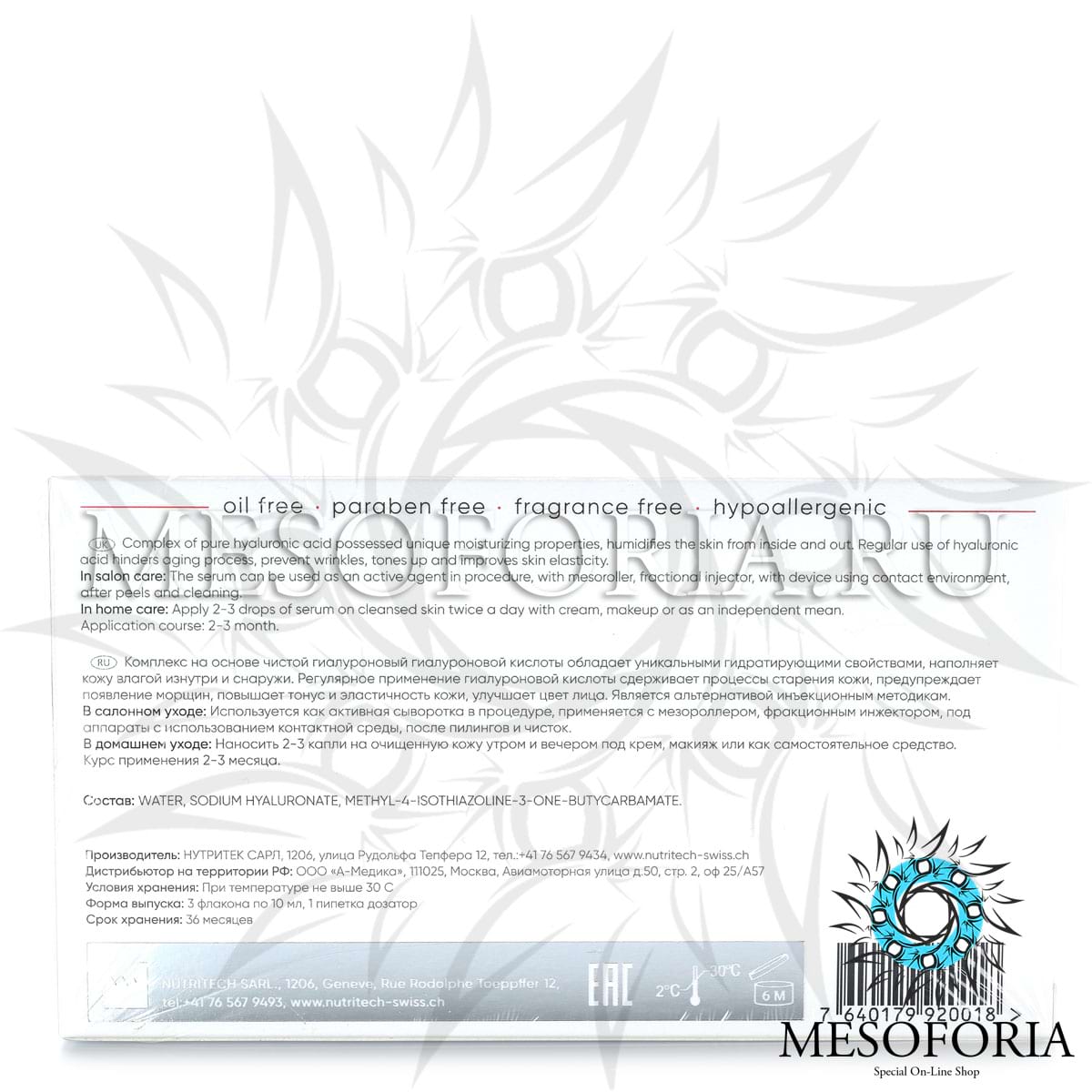 Комплекс на основе чистой гиалуроновой кислоты обладает уникальными гидратирующими свойствами, наполняет кожу влагой изнутри и снаружи. Регулярное применение гиалуроновой кислоты сдерживает процесс старения, предупреждает появление морщин, повышает тонус и эластичность кожи, улучшает цвет лица. Является альтернативой инъекционным методикам.