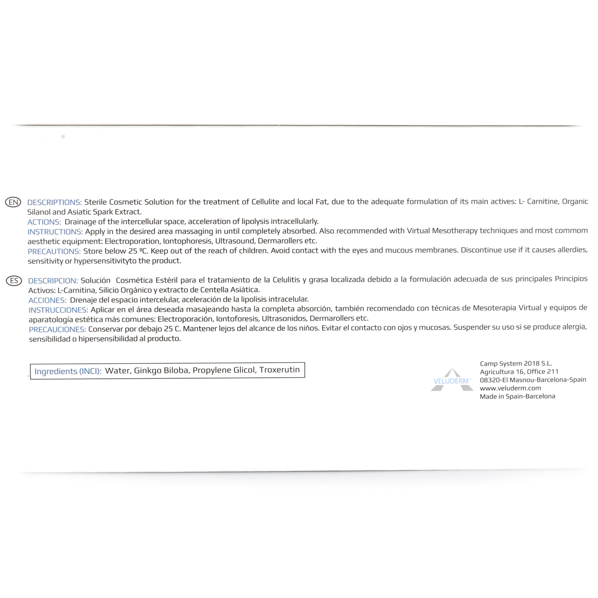Veluderm (Велюдерм) Ginkgo Rutine, гинкго билоба, рутин (отеки, пигментации, целлюлит), 5 мл