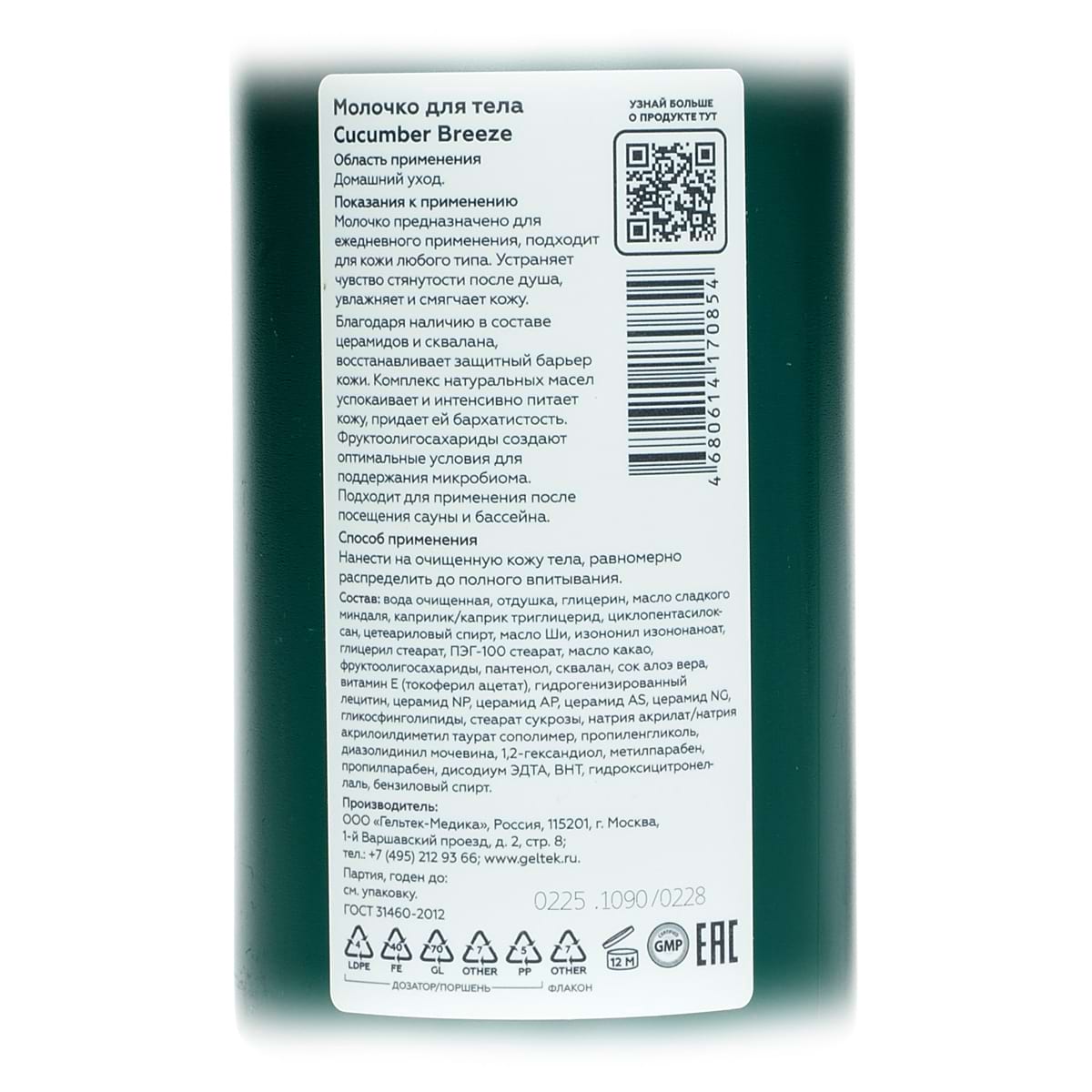 Молочко для тела Cucumber Breeze Geltek (Гельтек) - 390 мл