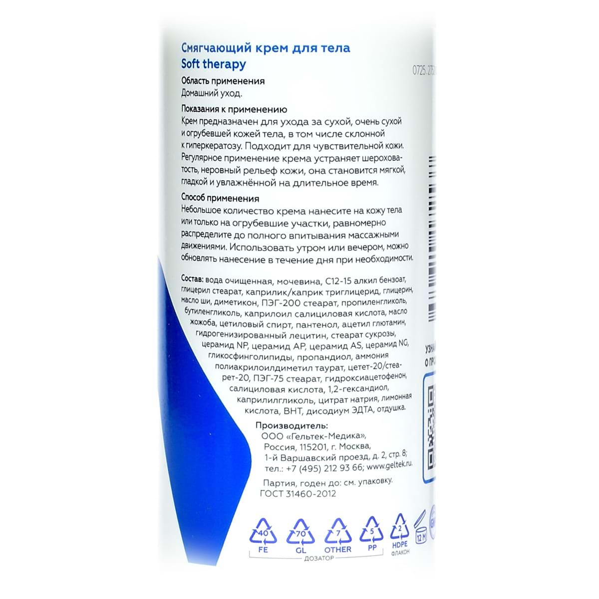 Смягчающий крем для тела Soft Therapy Geltek (Гельтек) - 240 мл