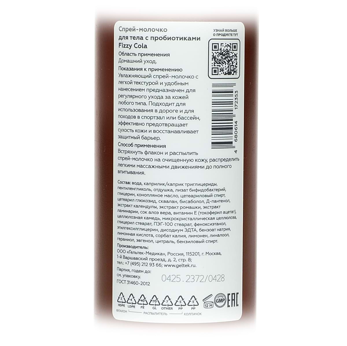 Спрей-молочко для тела с пробиотиками Fizzy Cola Geltek (Гельтек) - 150 мл