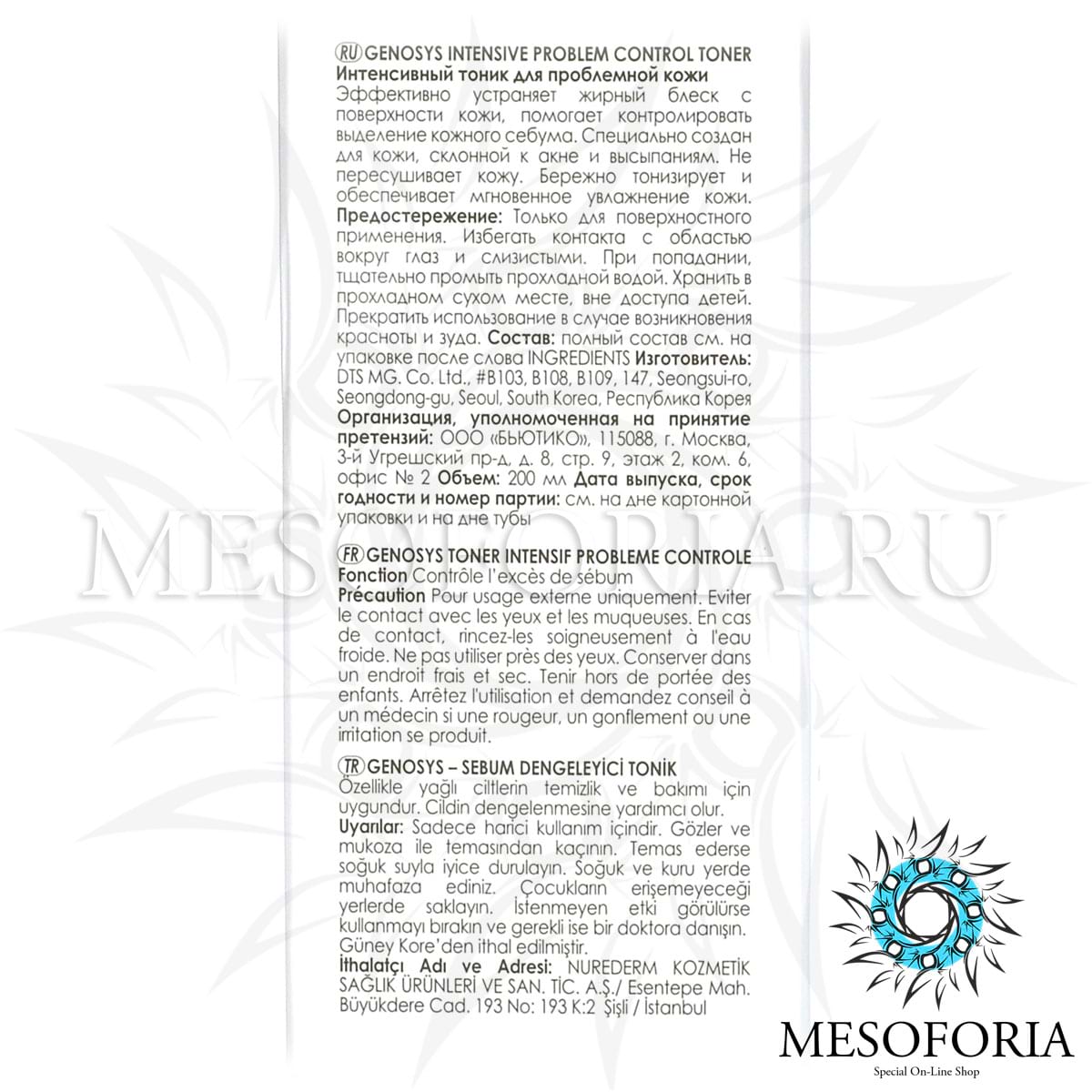 Интенсивный тоник для проблемной кожи / Intensive Problem Control Toner, Genosys (Генозис) - 200 мл