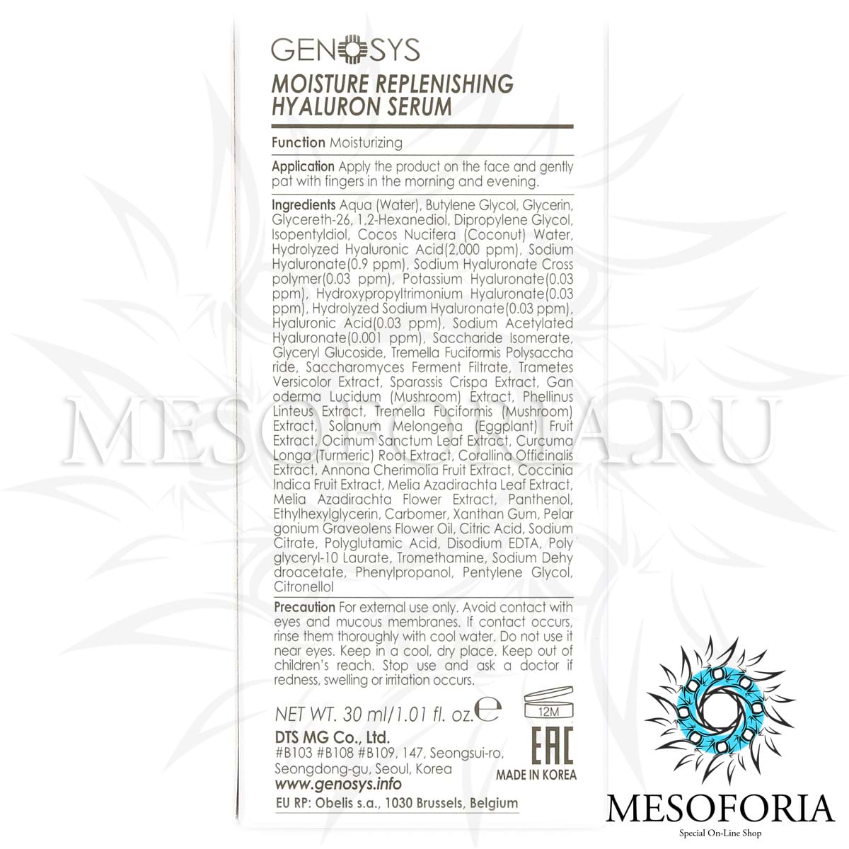 Питательная и увлажняющая гиалуроновая сыворотка / Moisture Replenishing Hyaluron Serum, Genosys (Генозис) - 30 мл