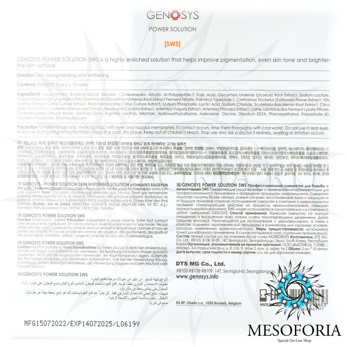 Профессиональная сыворотка для борьбы с пигментацией SWS / SWS Power Solution, Genosys (Генозис) - 2 мл