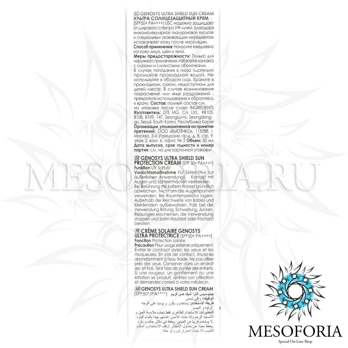 Ультра солнцезащитный крем [SPF 50+ PA++++] / Ultra Shield Sun Cream, Genosys (Генозис) - 50 мл