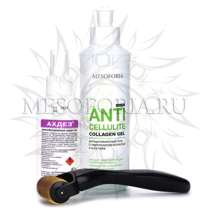 Набор с мезороллером для тела DRS 1200 (удаление целлюлита, дряблости кожи), антицеллюлитным гелем с гидролизатом коллагена и Aloe Vera и средством дезинфекции