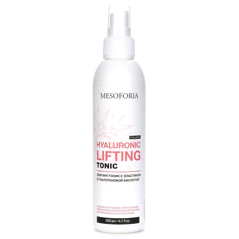 Hyaluronic Lifting Tonic / Лифтинг-тоник с эластином и гиалуроновой кислотой, Mesoforia (Мезофория) - 200 мл- 1 шт. Тоник рекомендован при сниженном тонусе кожи лица, тела, подтяжки и улучшении упругости кожи, профилактике возникновения растяжек при беременности (нанесение без мезороллера), восстановление после инсоляции, пилингов, агрессивных процедур - ускорение регенерации, уплотнение кожи, интенсивное домашнее сопровождение процедур мезотерапии, пилинга.