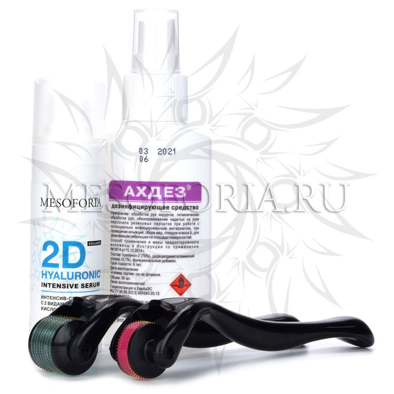 Набор с мезороллерами для лица и глаз (лифтинг, увлажнение, морщины), интенсив-сыворотка с 2 видами гиалуроновой кислоты, 30 мл и средством дезинфекции