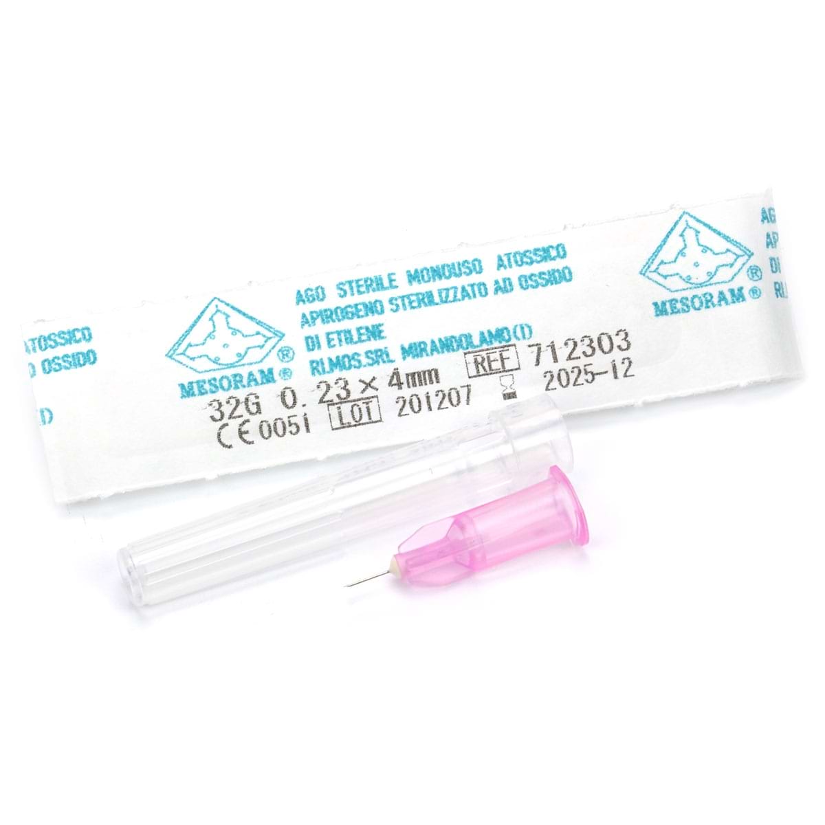 Mesoram - иглы инъекционные, стерильные, однократного применения. Каждая игла упакована в индивидуальную упаковку. Лазерная заточка игл уменьшает болевой эффект от процедуры. Используются для процедуры мезотерапии как по телу, так и по лицу.