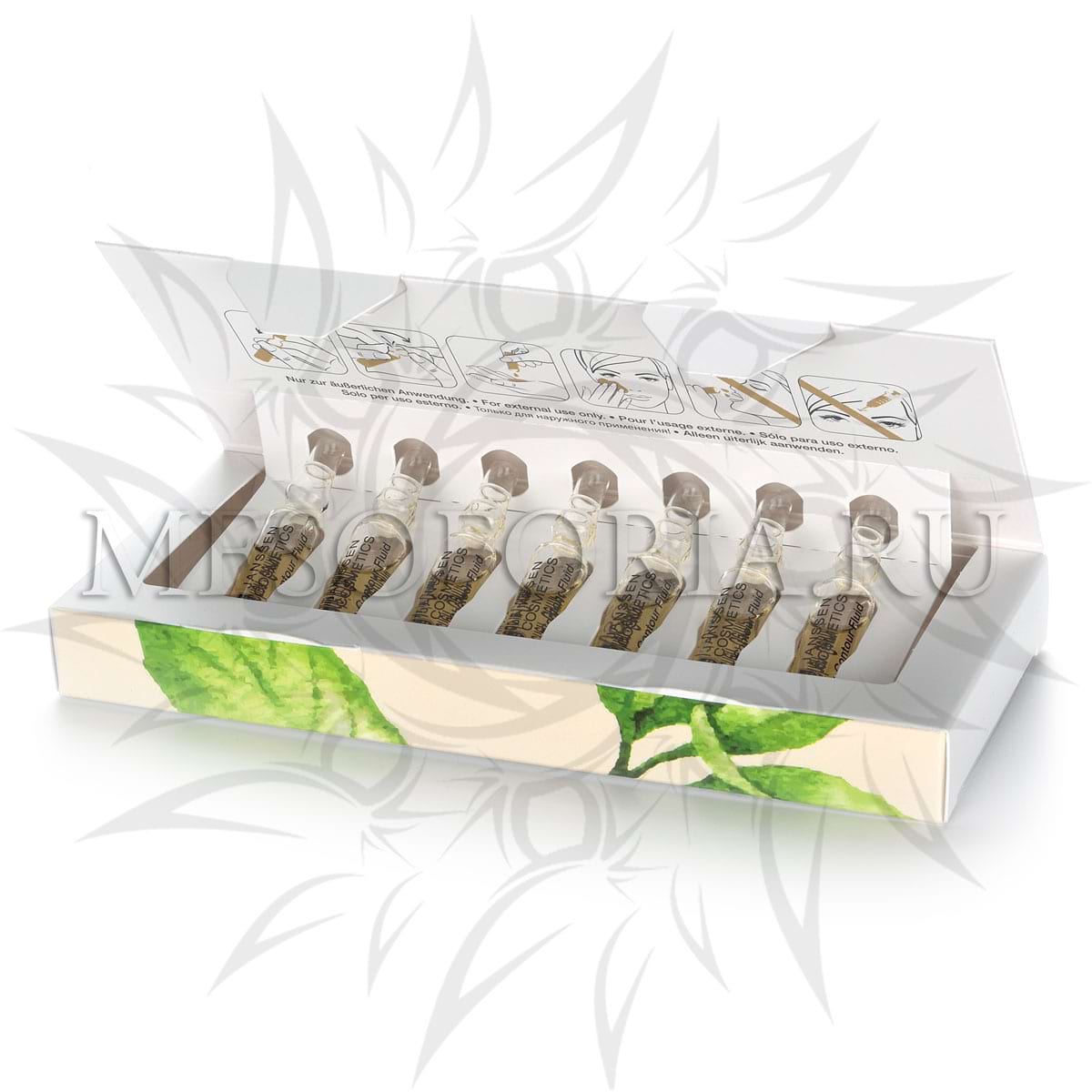 Наносите на чистую кожу. Для этого оберните ампулу бумажной салфеткой и резким движением отломите ее кончик. Вылейте содержимое ампулы на ладонь и затем распределите его по коже слегка надавливающими движениями. Поверх нанесите соответствующий дневной или ночной крем. Только для наружного применения! В салоне применять согласно регламенту процедуры. Нанесение с помощью ионофореза стимулирует микроциркуляцию, поэтому в случае куперозной кожи его не следует применять.