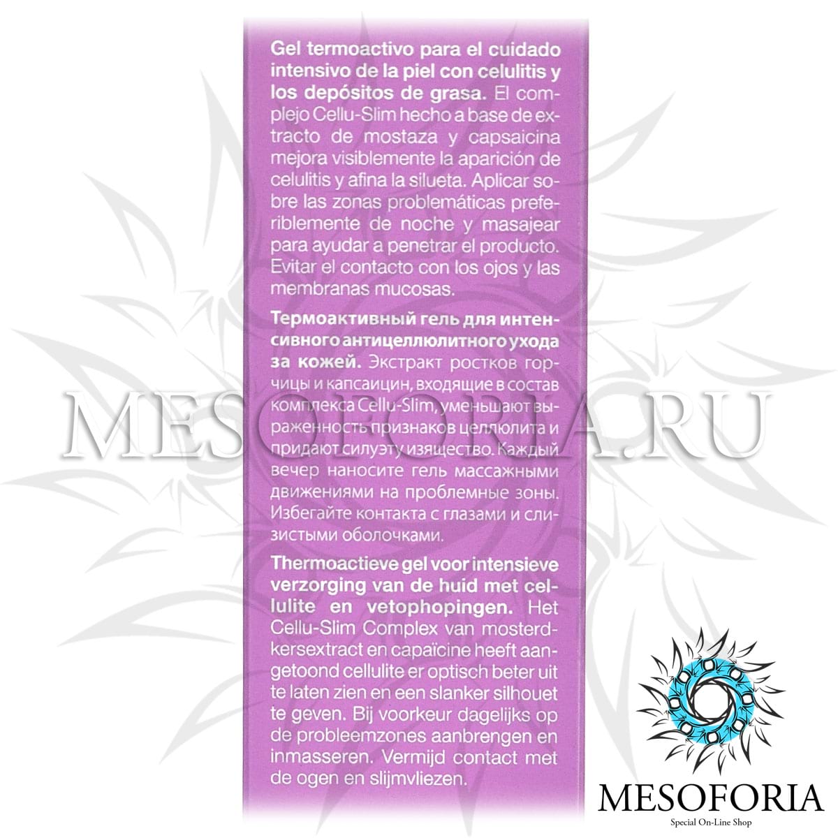 - Cellu-Slim Complex - инновационный антицеллюлитный комплекс на основе капсаицина из перца чили и экстракта ростков белой горчицы (Brassica alba). Активизирует микроциркуляцию, оказывает дренажное действие, предупреждает появление целлюлита. Способствует преобразованию белых адипоцитов, накапливающих жир, в бурые адипоциты, сжигающие жир.