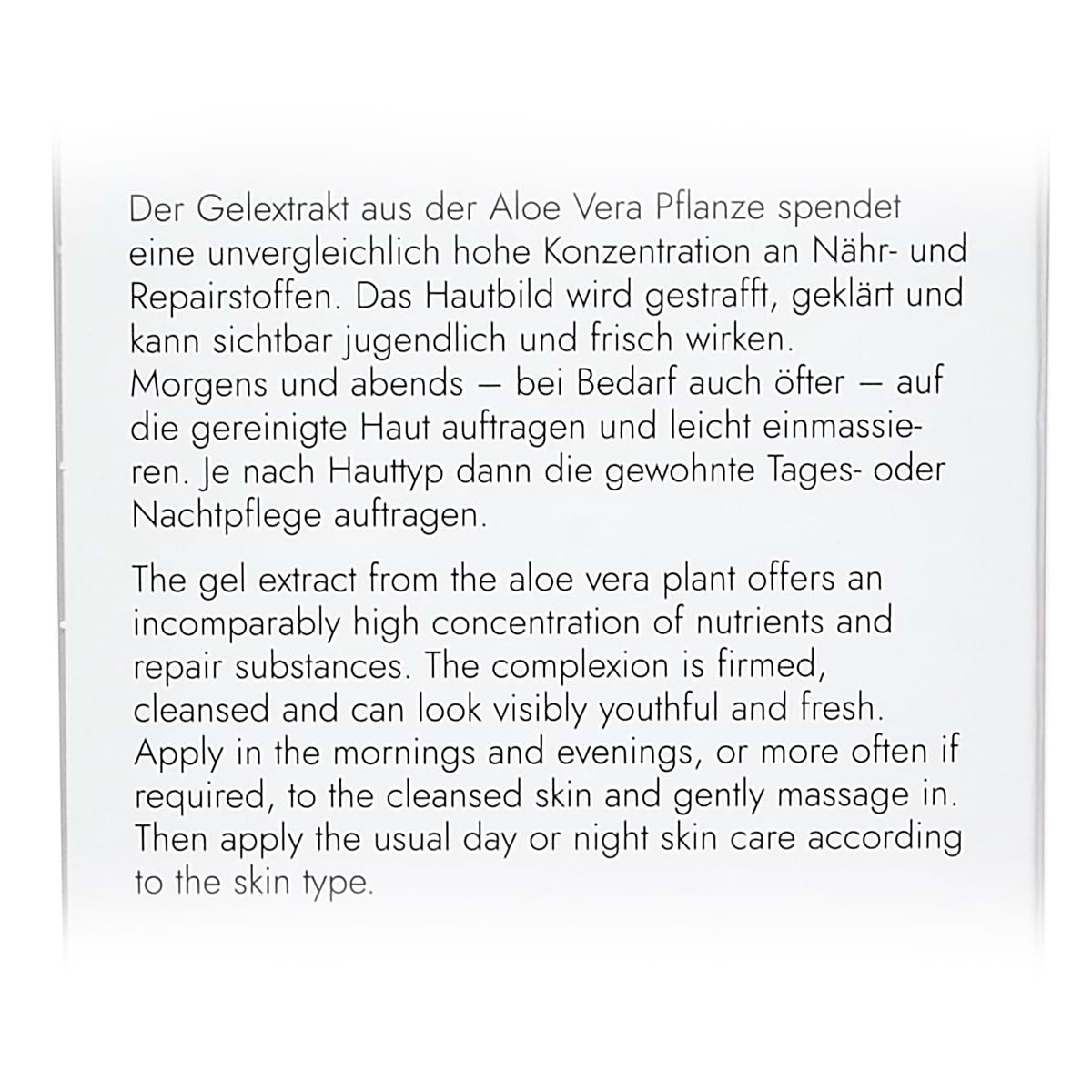 Легкая гель-сыворотка с соком алоэ вера обладает увлажняющим, успокаивающим и противовоспалительным эффектами. Может рассматриваться в качестве универсальной сыворотки для любого типа и состояния кожи. Приятно освежает кожу, смягчает ее и придает сияние.