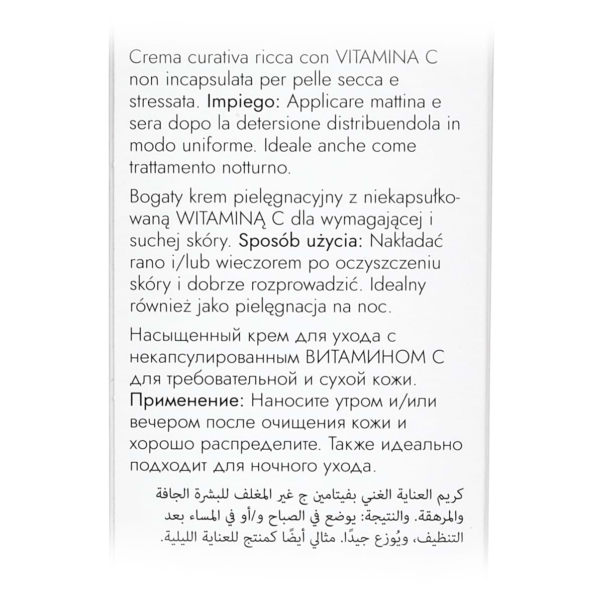 Витаминизирующий и восстанавливающий крем с витамином C, комплексом растительных масел, церамидами и молочными липидами для уставшей стрессированной кожи, склонной к сухости.