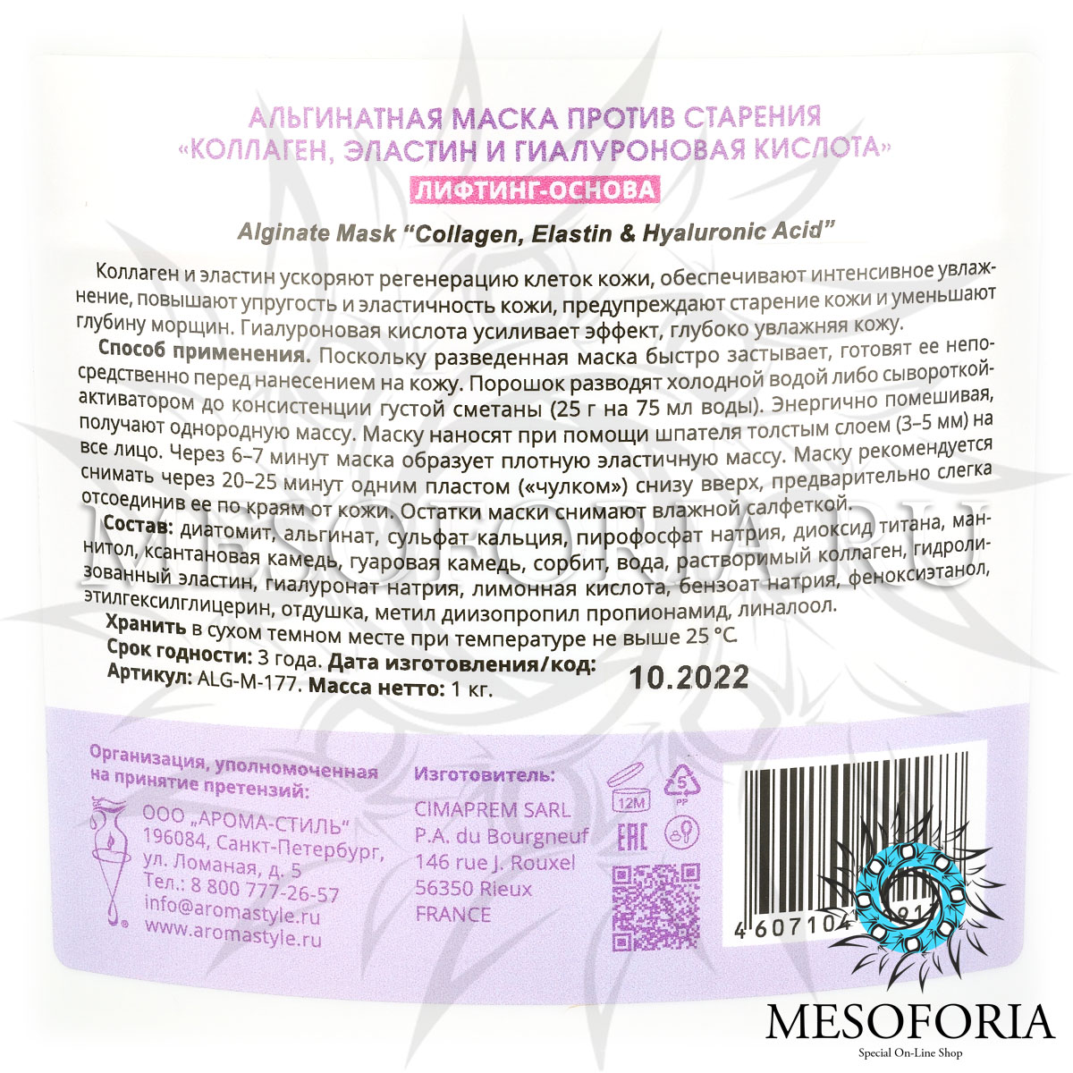 Alginate Mask «Collagen, Elastin & Hyaluronic Acid» от Algomask обеспечивает интенсивное увлажнение, повышает упругость и эластичность кожи, предупреждают старение и выравнивает рельеф кожи, сокращая проявление морщин.