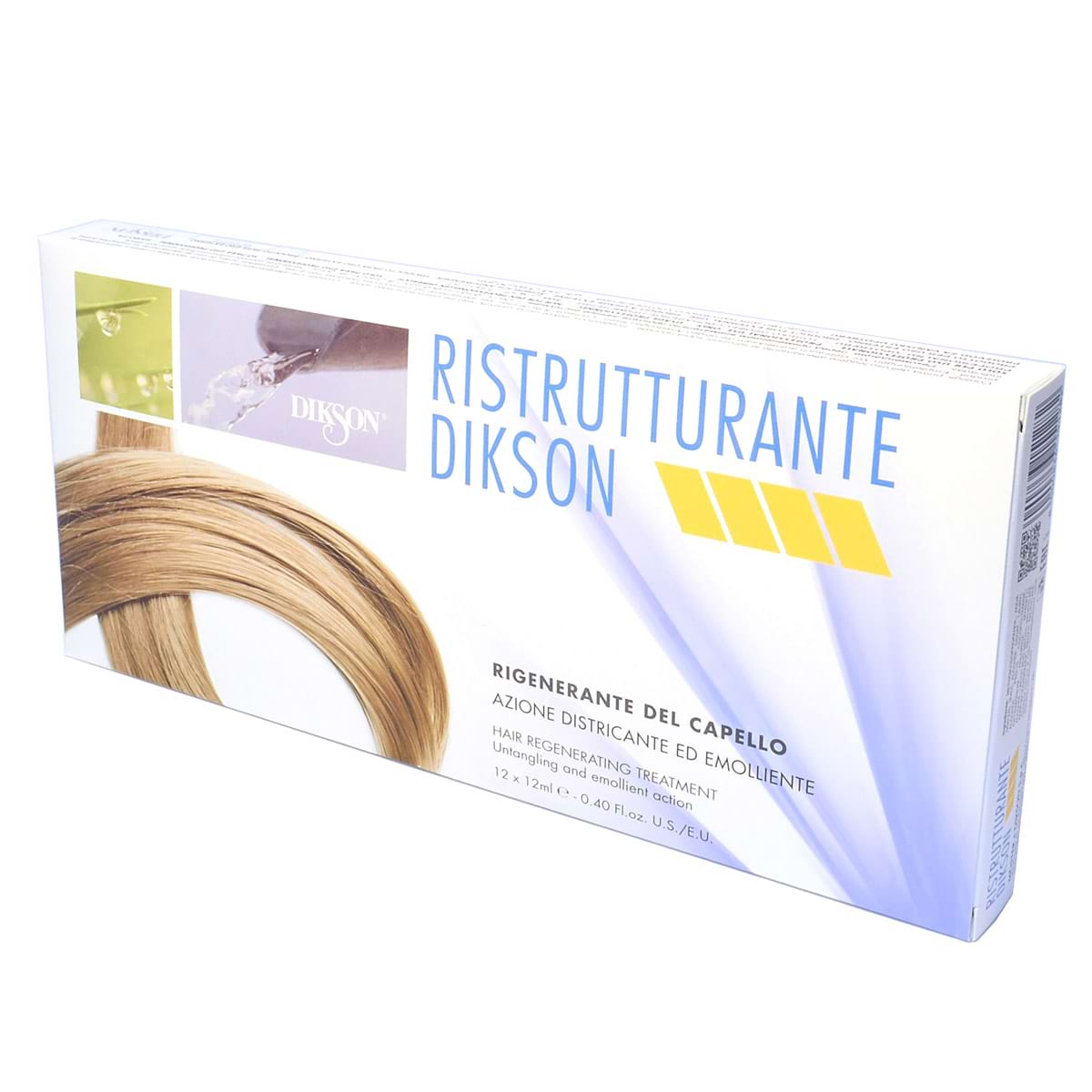 Ампульный комплекс Ristrutturante от Dikson для быстрого восстановления структуры пересушенных и травмированных волос, стимулирует регенерацию их клеток, прекрасно питает и уплотняет волосы. Препарат от Диксон дарит волосам роскошное сияние, волосяной стержень становится более гибким и менее подверженным к спутыванию. Использование Ristrutturante от Dikson существенно снижают риск раздражения кожи головы при даже самых агрессивных процедурах по окрашиванию волос, его применение одинаково целесообразно до, во время и после сеанса, универсален для любого вида воздействия химсоставами. Средство идеально для применения в рамках салона и одинаково хорошо совместимо с другими лечебными ампулами.
