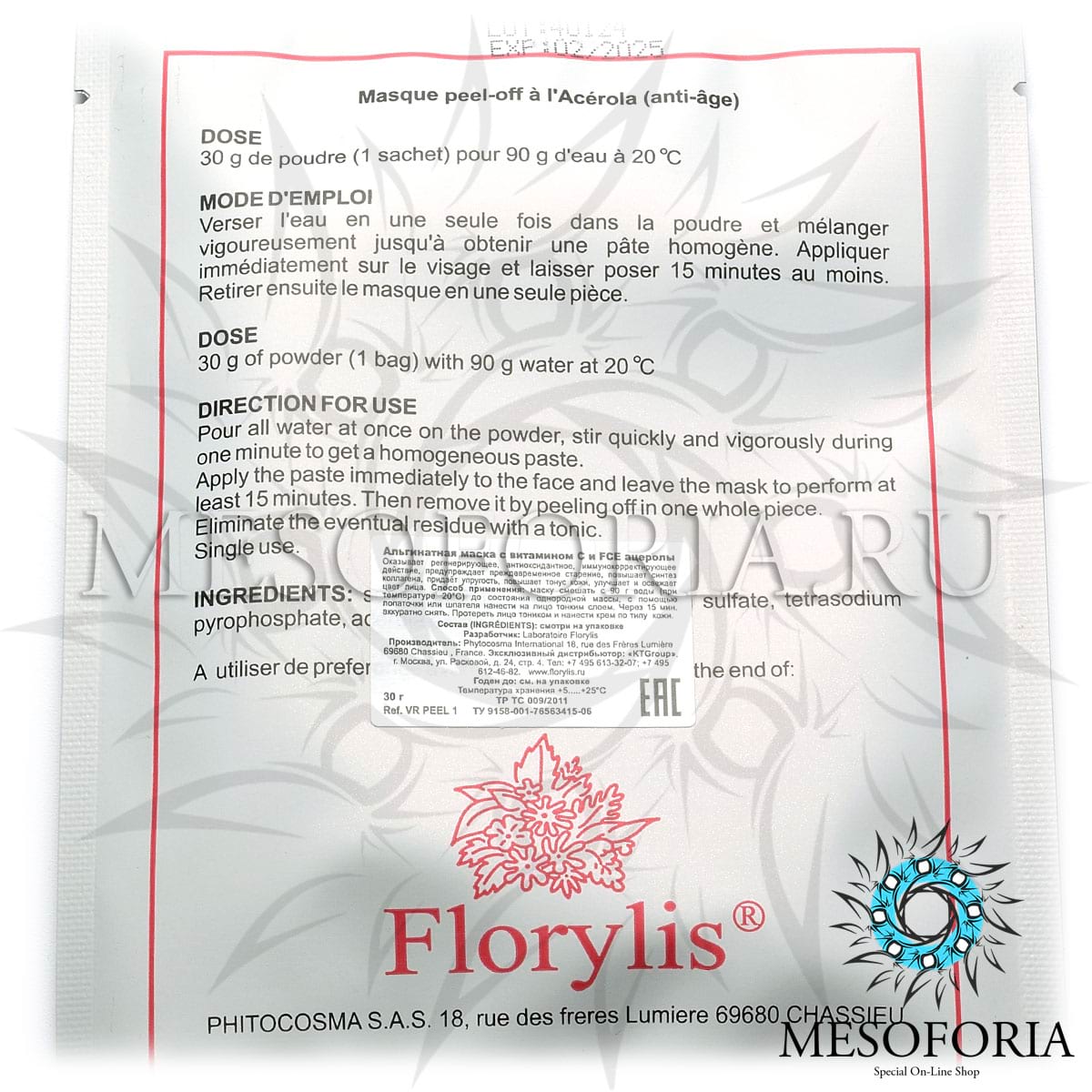 Альгинатная маска с витамином С и экстрактом ацеролы / Masque Peel-Off A L’acerola, Florylis (Флорилис) - 30 гр