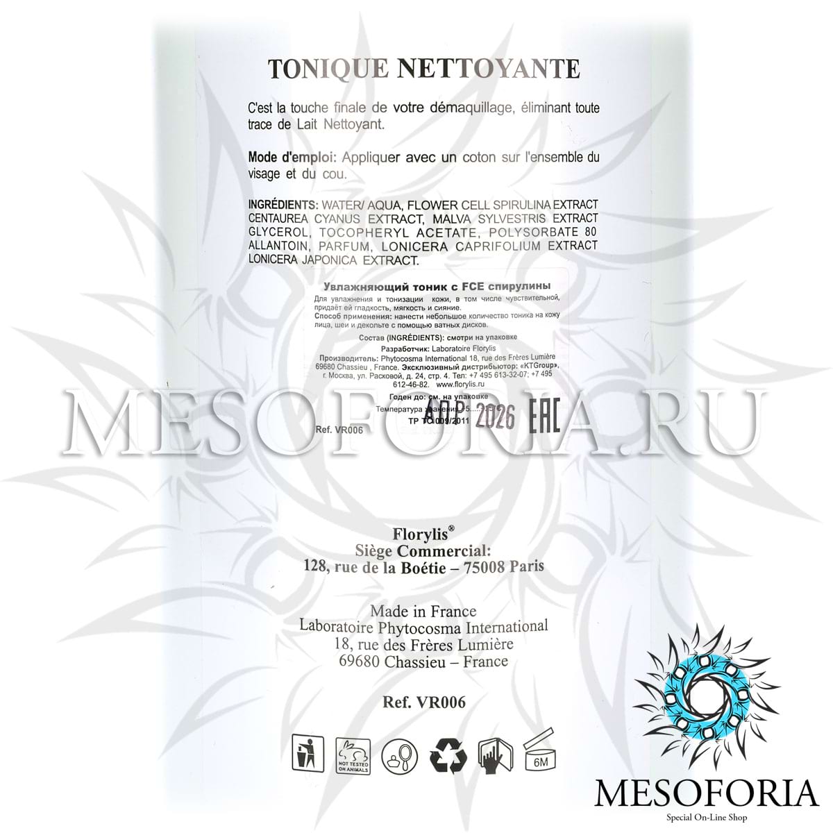 Увлажняющий тоник с FCE спирулины / Tonique Nettoyant, Florylis (Флорилис) - 750 мл