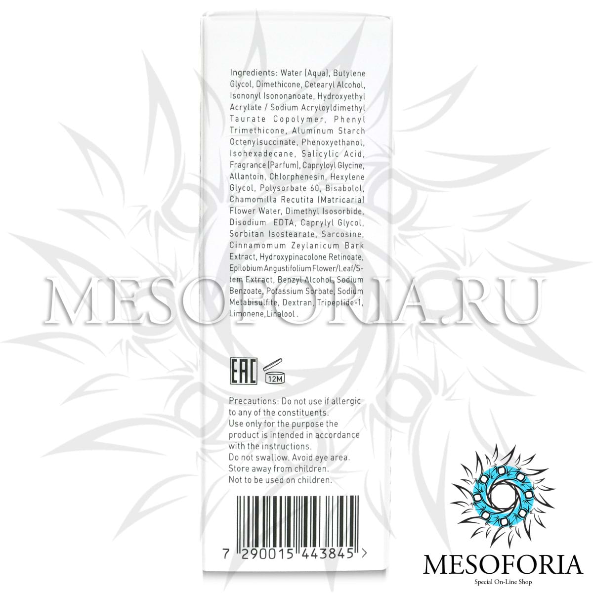 Салициловая кислота, аллантоин, бисаболол, экстракты ромашки и корицы, RET комплекс, ниацинамид.