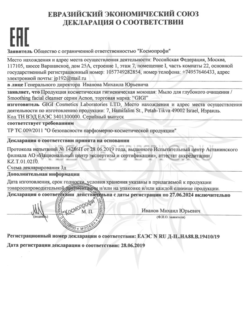 Мыло для глубокого очищения / Smoothing Facial Cleanser, Acnon, GiGi (Джи Джи) - 200 мл