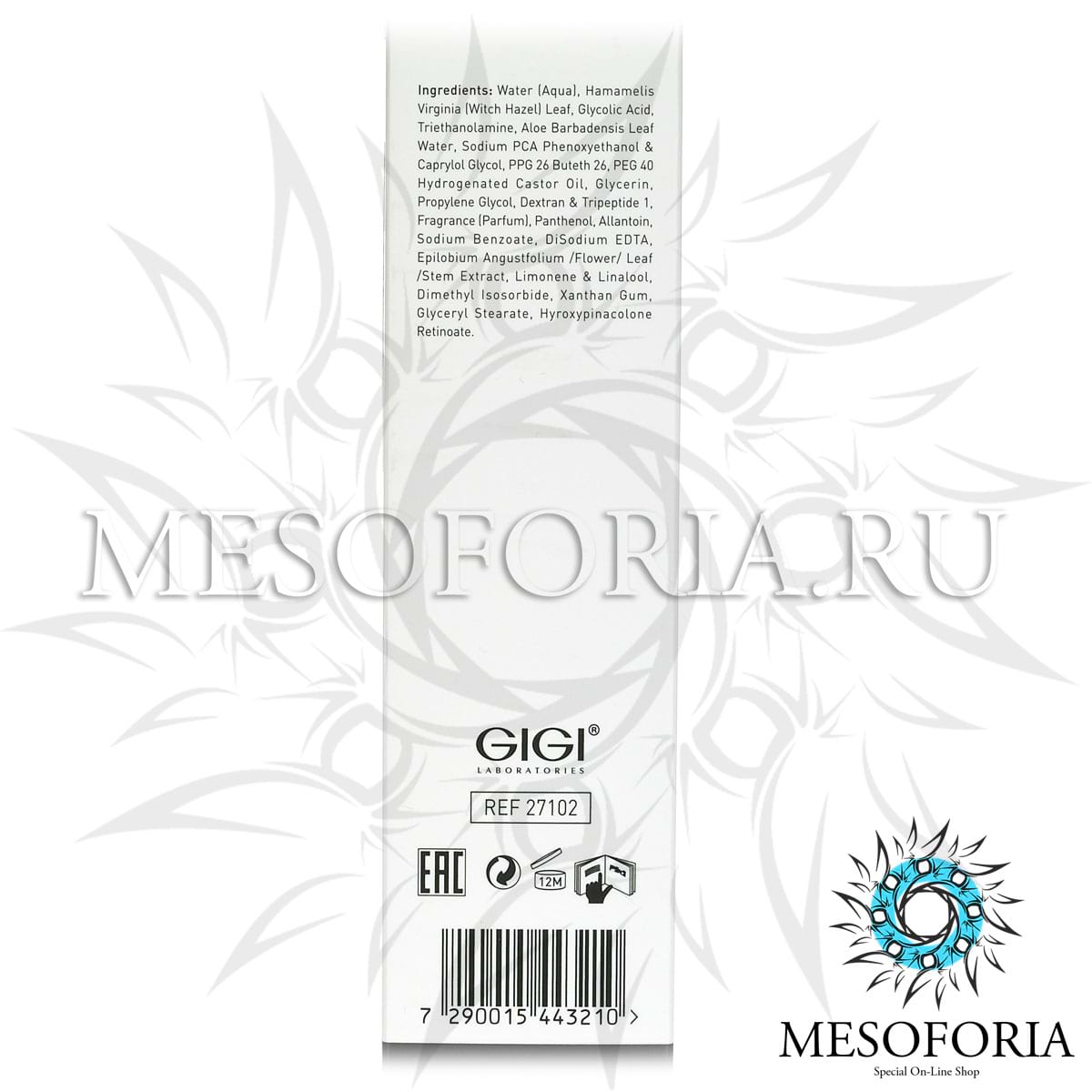 RET комплекс, гликолевая кислота, комплекс NMF, экстракт гамамелиса, экстракт алоэ, витамин B5.