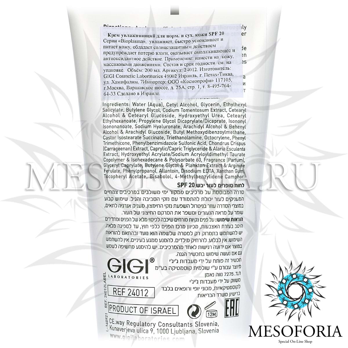 Крем увлажняющий для нормальной и сухой кожи / Moisturizer Supreme SPF 20, Bioplasma, GiGi (Джи Джи) - 200 мл