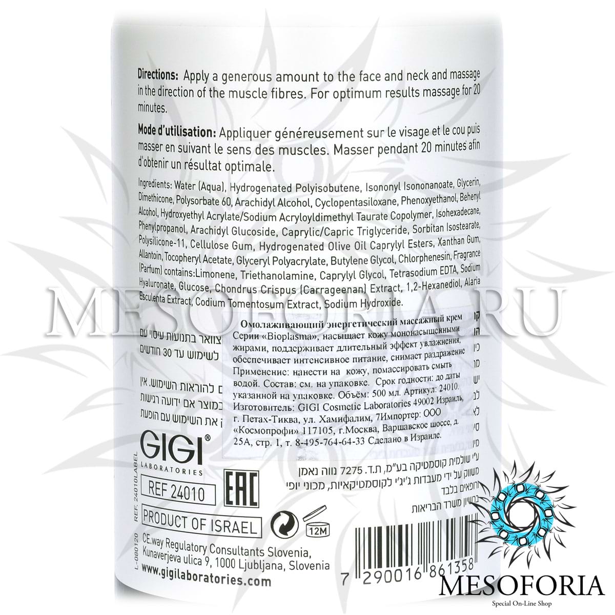 GiGi Bioplasma Revival Massage Cream улучшает микроциркуляцию крови, стимулирует лимфатический ток, способствует выводу токсинов и шлаков, нормализует обмен веществ, снимает стресс.