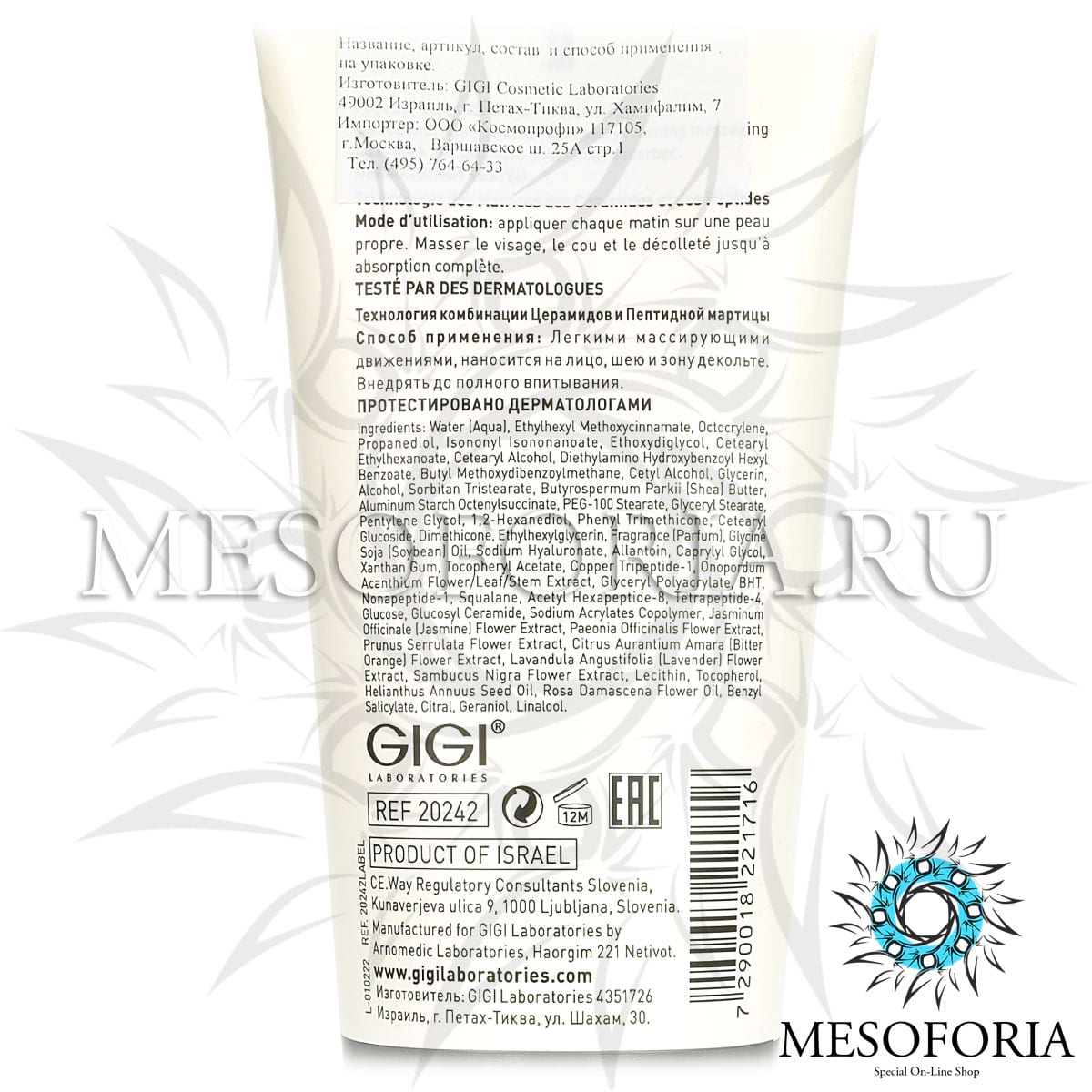 Активные ингредиенты: пептидный комплекс PCM™, гиалуроновая кислота 5-20 КДа - 0.3%, витамин Е, экстракты масла Ши, сои, онопордума акантия, лаванды, жасмина, пиона, черной бузины.