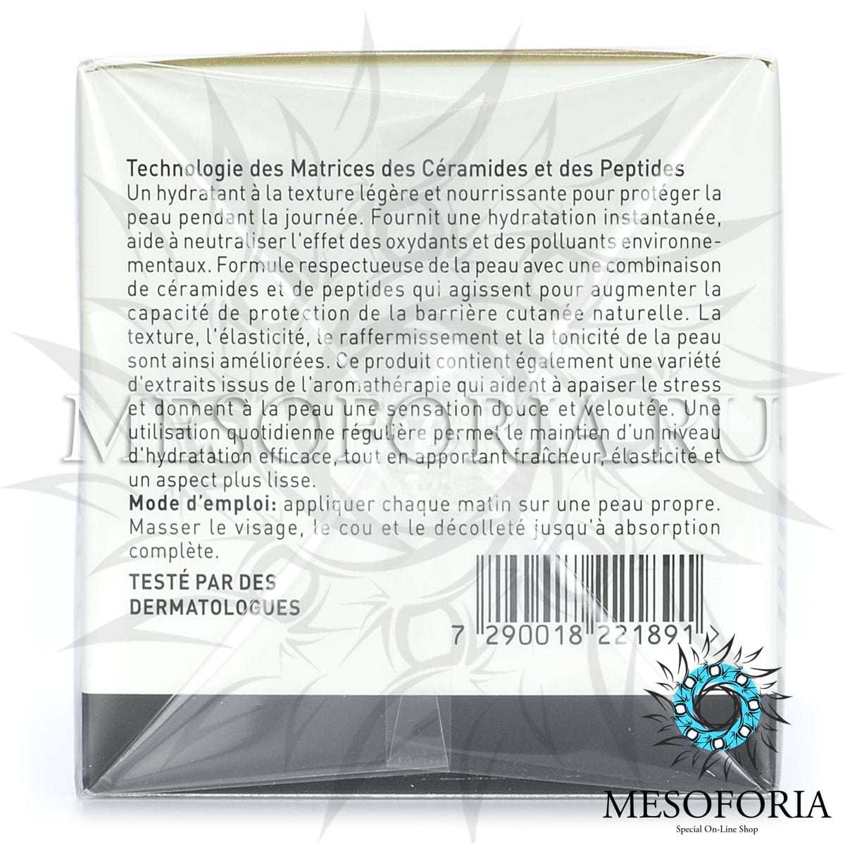 Активные ингредиенты: пептидный комплекс PCM™, гиалуроновая кислота 5-20 КДа - 0.3%, витамин Е, экстракты масла Ши, сои, онопордума акантия, лаванды, жасмина, пиона, черной бузины.