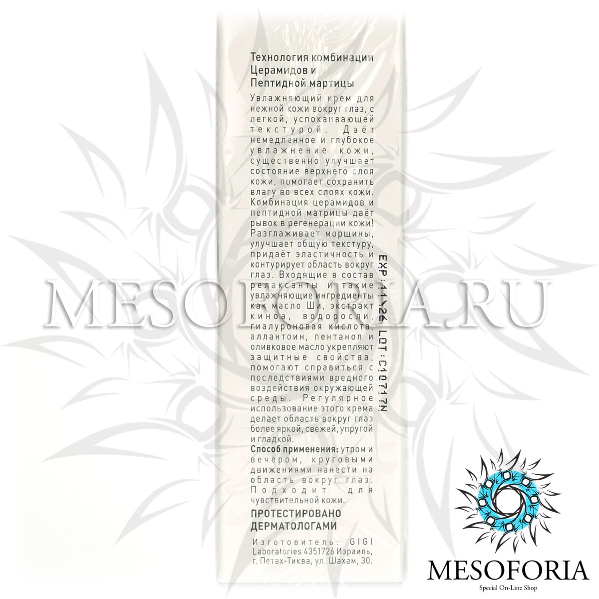 Увлажняющий крем с комфортной текстурой для немедленного и глубокого ухода за нежной кожей вокруг глаз. Повышает гидратацию в эпидермисе и улучшает способность сохранять естественную влагу во всех слоях. Благоприятная для кожи формула в комбинации церамидов, мощного антиоксидантного и лифтингового комплекса работает над повышением способности к регенерации и омоложению, уменьшению сухости, улучшению текстуры, эластичности и упругости кожи в области вокруг глаз. Укрепляют защитную функцию нежной кожи, предотвращая нарушение эпидермального барьера. Крем активно борется с морщинами и провисанием кожи.