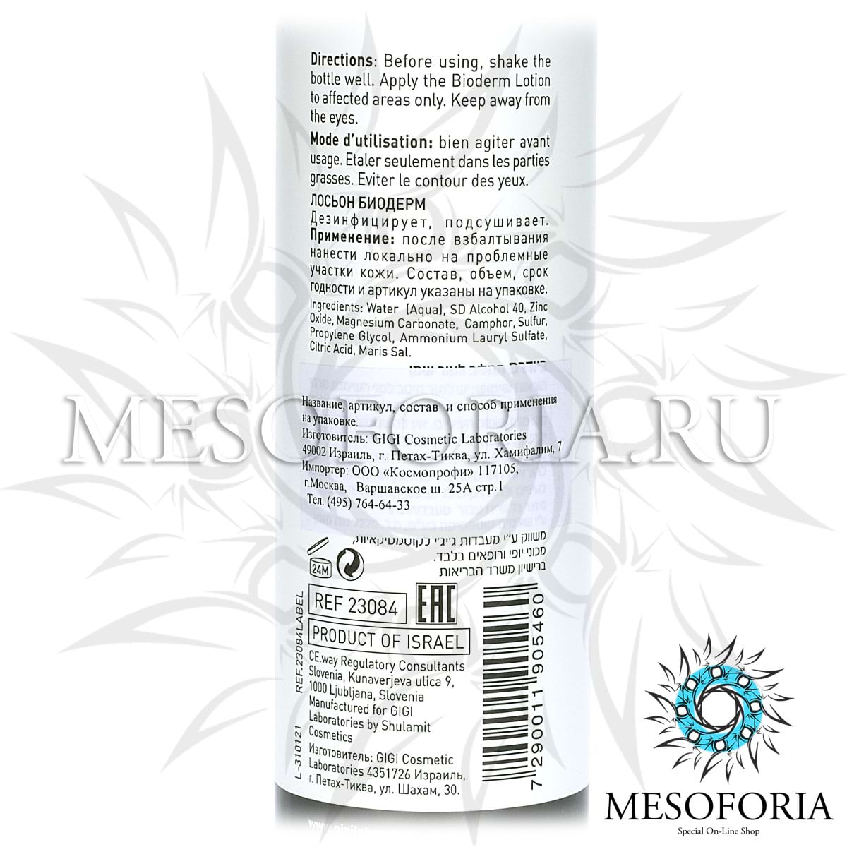 Skin Expert Bioderm lotion for oily skin GIGI предназначен для ухода за жирной и проблемной кожей (пустулезная форма). Биодерм лосьон (болтушка) от Джи Джи идеален после механической чистки и при локализации патологического процесса в области груди и спины. Оказывает противовоспалительное, вяжущее, подсушивающее, осветляющее, успокаивающее, анестезирующее и охлаждающее действия. Применяется при различных формах акне, постакне, себореи. Удобен в применении как в косметическом кабинете, так и в домашних условиях. Может использоваться как локально, так и на всю поверхность кожи лица (как первая маска).