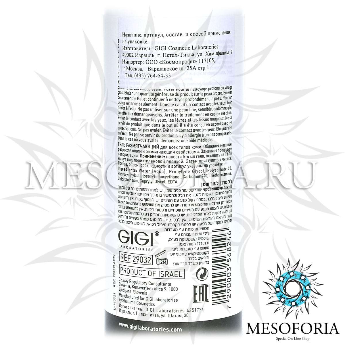 Гель размягчающий для всех типов кожи от Джи Джи содержит пару Липацид-розовая вода, что придает ему существенные антисептические и антибактериальные свойства, гель GiGi также интенсивно нормализует выработку кожного сала и оказывает вяжущее действие. Это средство – не менее эффективная альтернативы процедуры вапоризации, но может быть и совмещен с ней. Гель ДжиДжи особенно рекомендован для проведения сеансов дезинкрустации и ультразвуковой чистки.