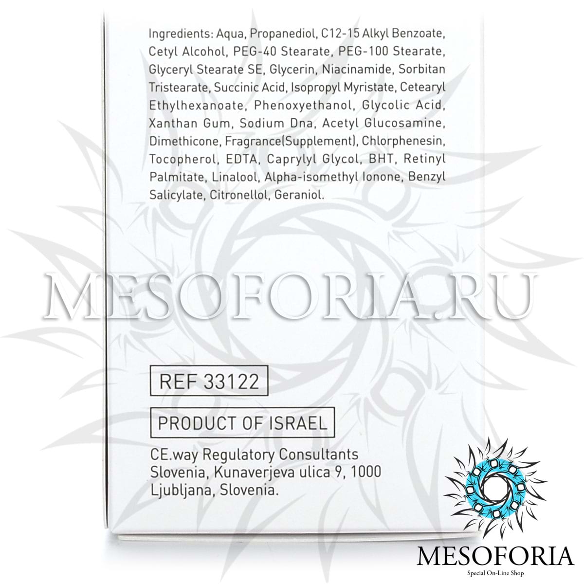 Янтарная кислота, гликолевая кислота, витамин Е, ретинол пальмитат, глицерин.