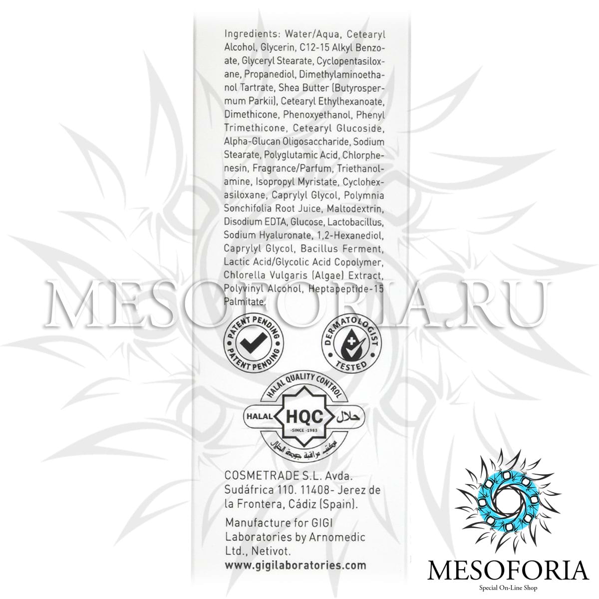 ДМАЕ, пептиды, полиглутаминовая кислота, сок корня якона, комплекс пробиотиков, масло Ши, экстракт хлореллы, мочевина, глицерин.