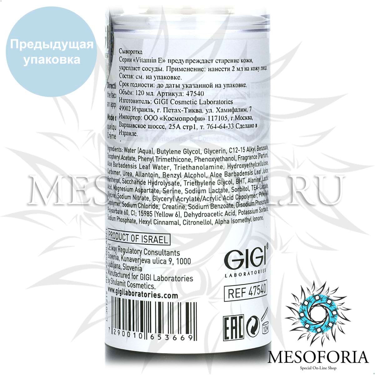 Активные компоненты Vitamin E Serum от GiGi: витамин Е; Глицин; Аллантоин; Аланин; Мочевина; Сахариды; Аспартат магния; Гель Алоэ Вера; NMF-натуральный увлажняющий фактор; Пантенол; Лицетин; Молочная кислота.