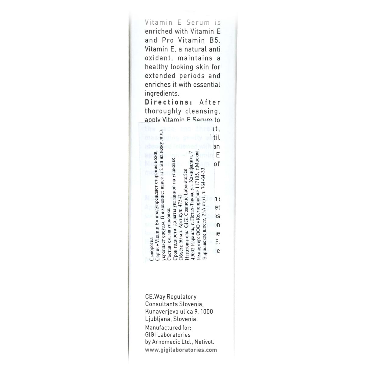 Сыворотка с Витамином Е / Serum, Vitamin E, GiGi (Джи Джи) - 50 мл