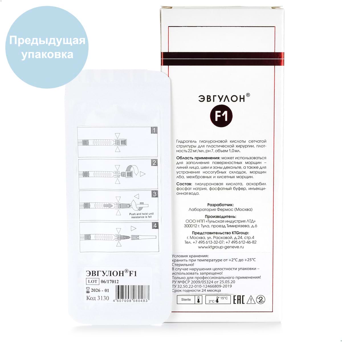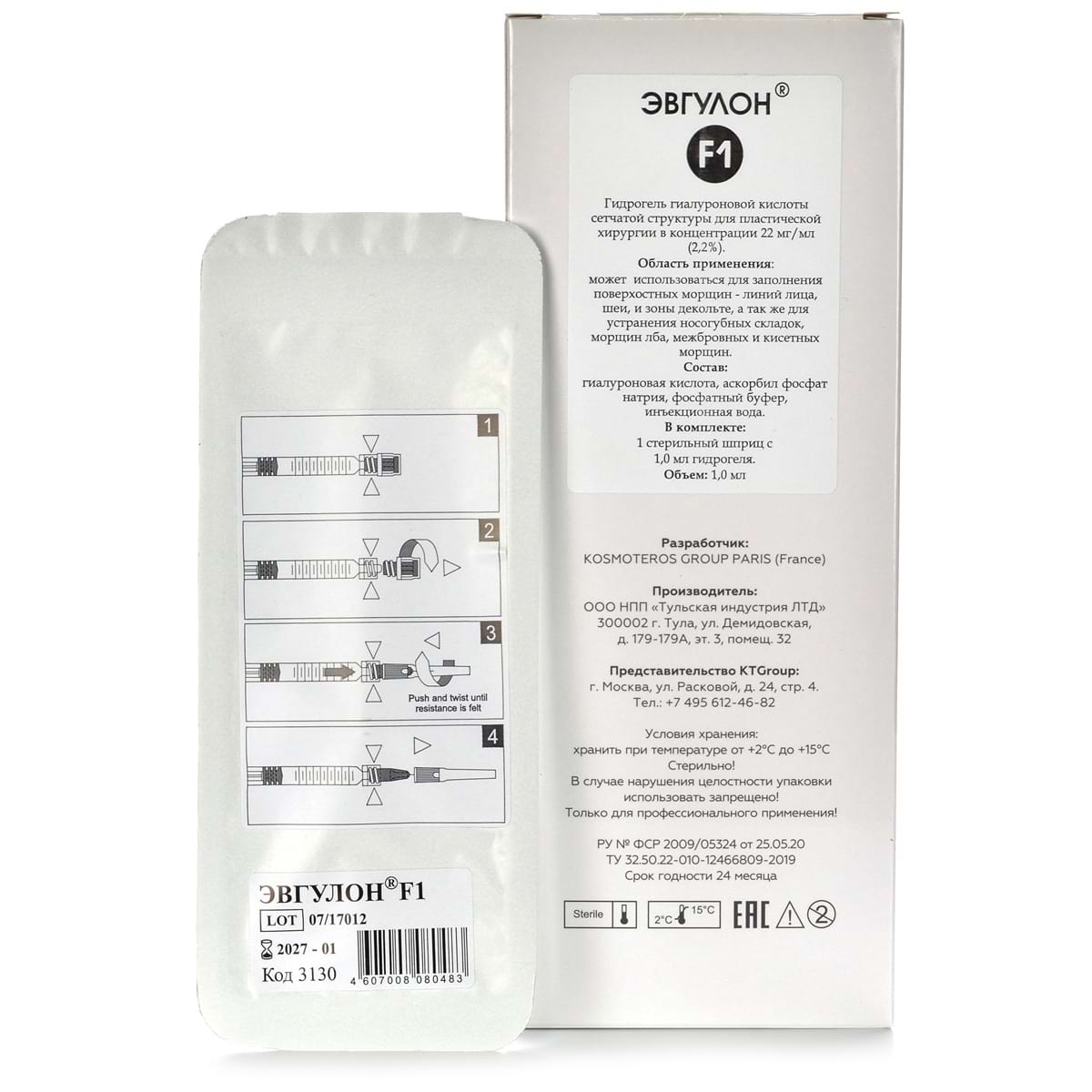 «Эвгулон F1» – дермальный филлер, предназначенный для поверхностных морщин‐линий лица, шеи и зоны декольте. Идеальный материал для устранения носогубных складок, морщин лба и межбровья, «гусиных лапок», кисетных морщин, а также для коррекции темных кругов под глазами — носослезной и пальпебромалярной борозд.