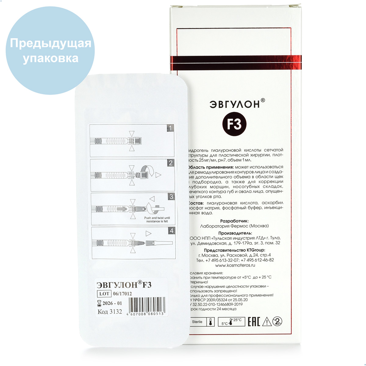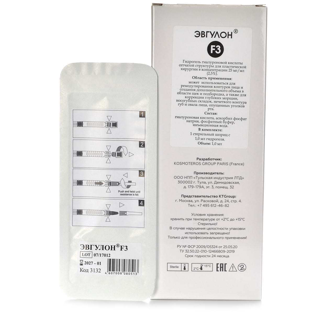 Эвгулон F3 от Kosmoteros – препарат с интенсивным наполняющим эффектом. Предназначен для ремоделирования контуров лица, создания объема. Благодаря таким характеристикам как вязкость и пластичнось этот филлер идеально подходит для коррекции глубоких морщин, носогубных складок, нечеткого контура губ, опущенных уголков рта, дефицита объема в области щек, дефицита объема в области подбородка, нечеткой линии овала лица.