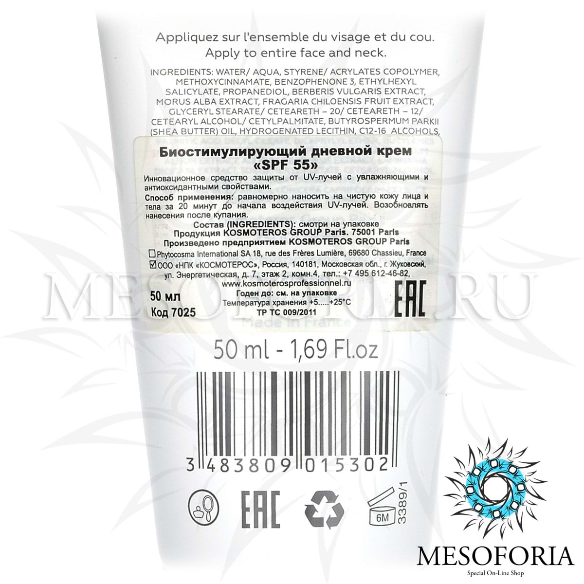 Биостимулирующий дневной крем SPF-55 / Creme De Jour Biostimulante SPF 55, Kosmoteros (Космотерос), 50 мл