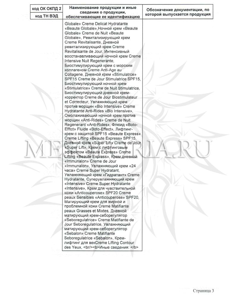 Наименование косметики