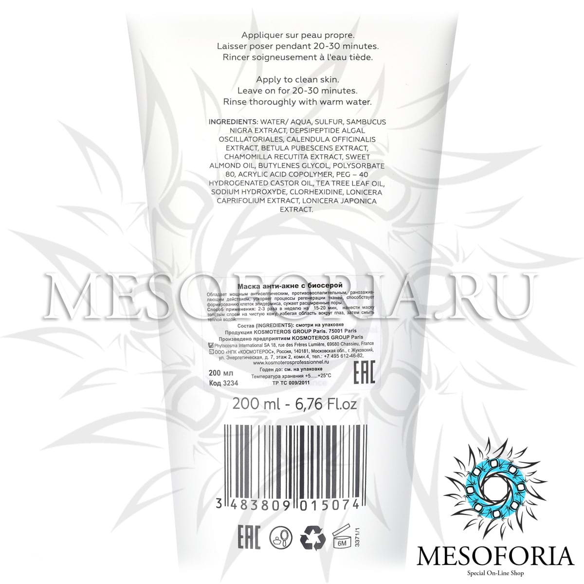 Маска с биосерой для жирной и проблемной кожи / Masque Au Bio Soufre, Kosmoteros (Космотерос), 200 мл