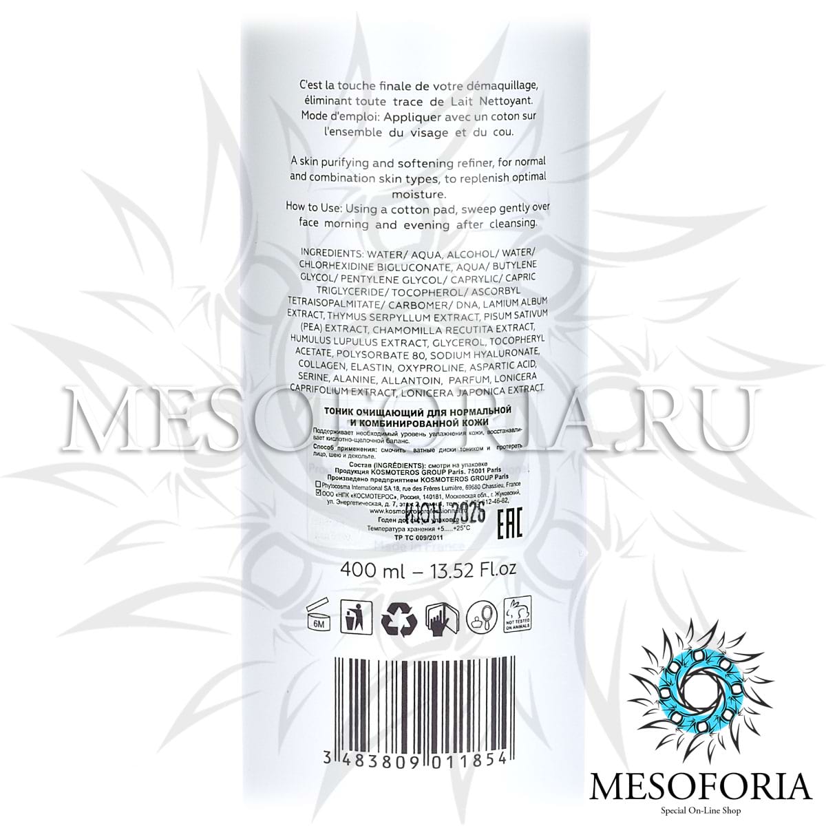 Очищающий тоник для нормальной и комбинированной кожи / Tonique Peaux Normales Et Mixtes, Kosmoteros (Космотерос), 400 мл