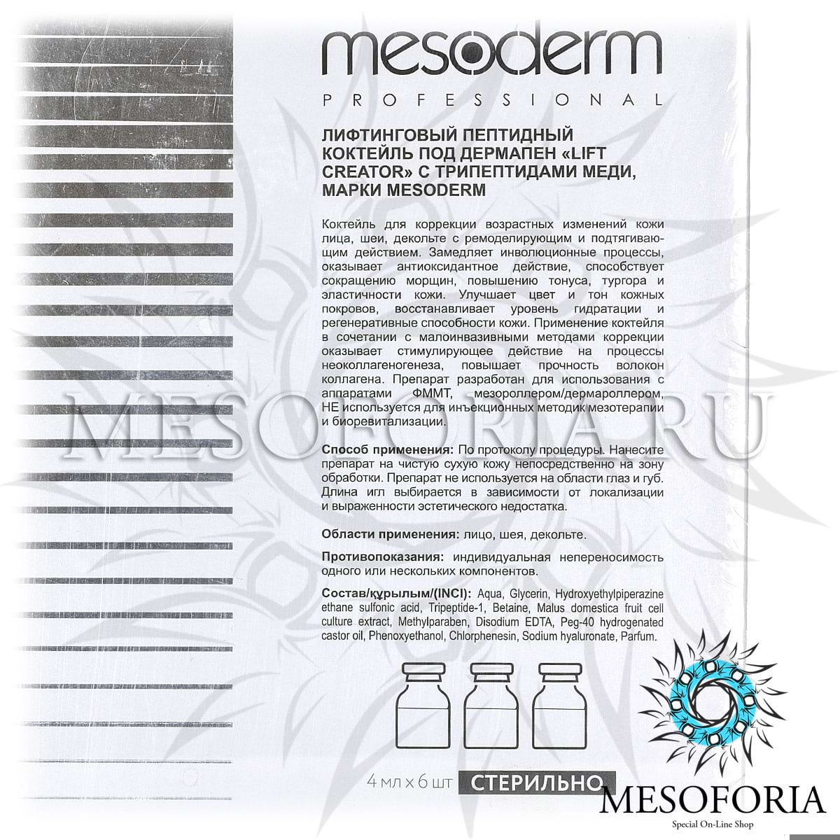 Лифтинговый пептидный коктейль под дермапен с трипептидами меди / Lift Creator, Mesoderm (Мезодерм), 4 мл х 6 шт