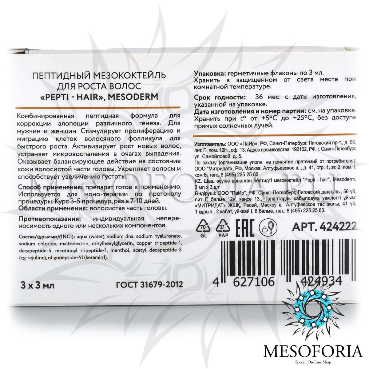Пептидный мезококтейль для роста волос «Pepti - HAIR», Mesoderm (Мезодерм), 3 мл х 3 шт