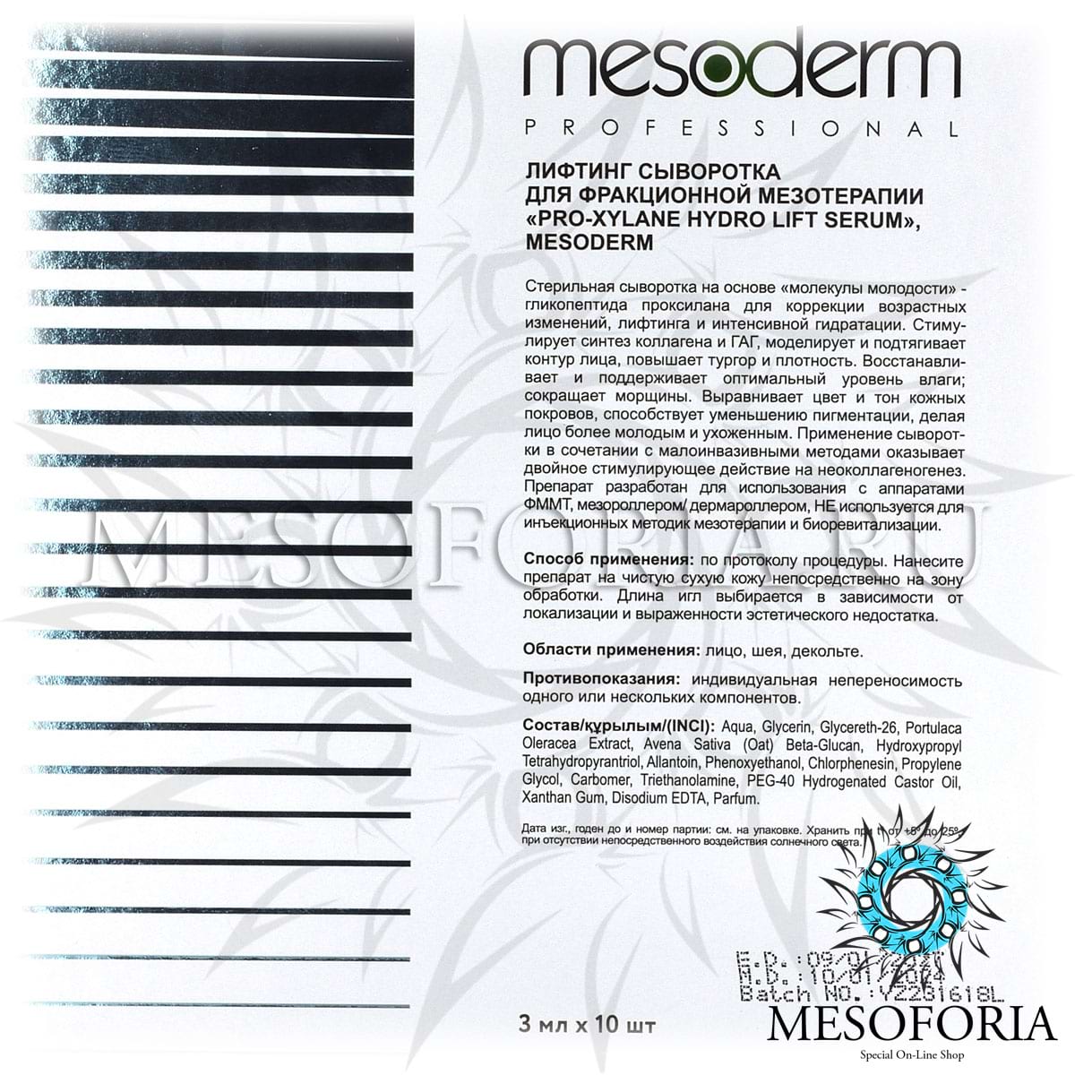 Лифтинг сыворотка для фракционной мезотерапии / Pro-Xylane Hydro Lift Serum, Mesoderm (Мезодерм), 3 мл х 10 шт
