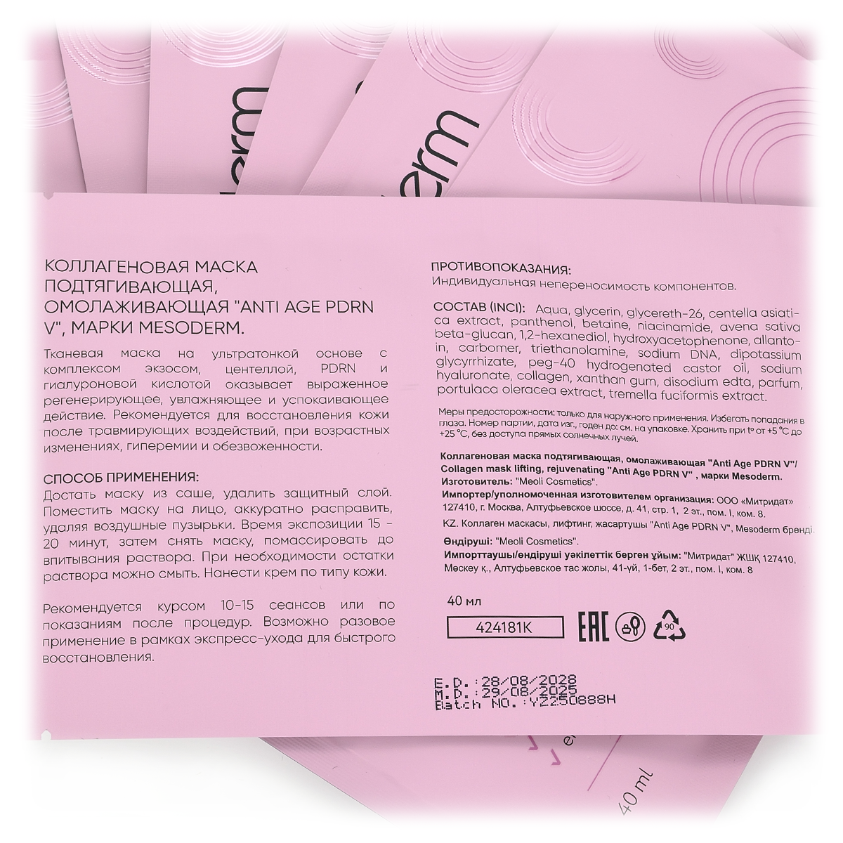 Коллагеновая маска подтягивающая, омолаживающая "Anti Age PDRN V", Mesoderm (Мезодерм), 40мл*10 штук