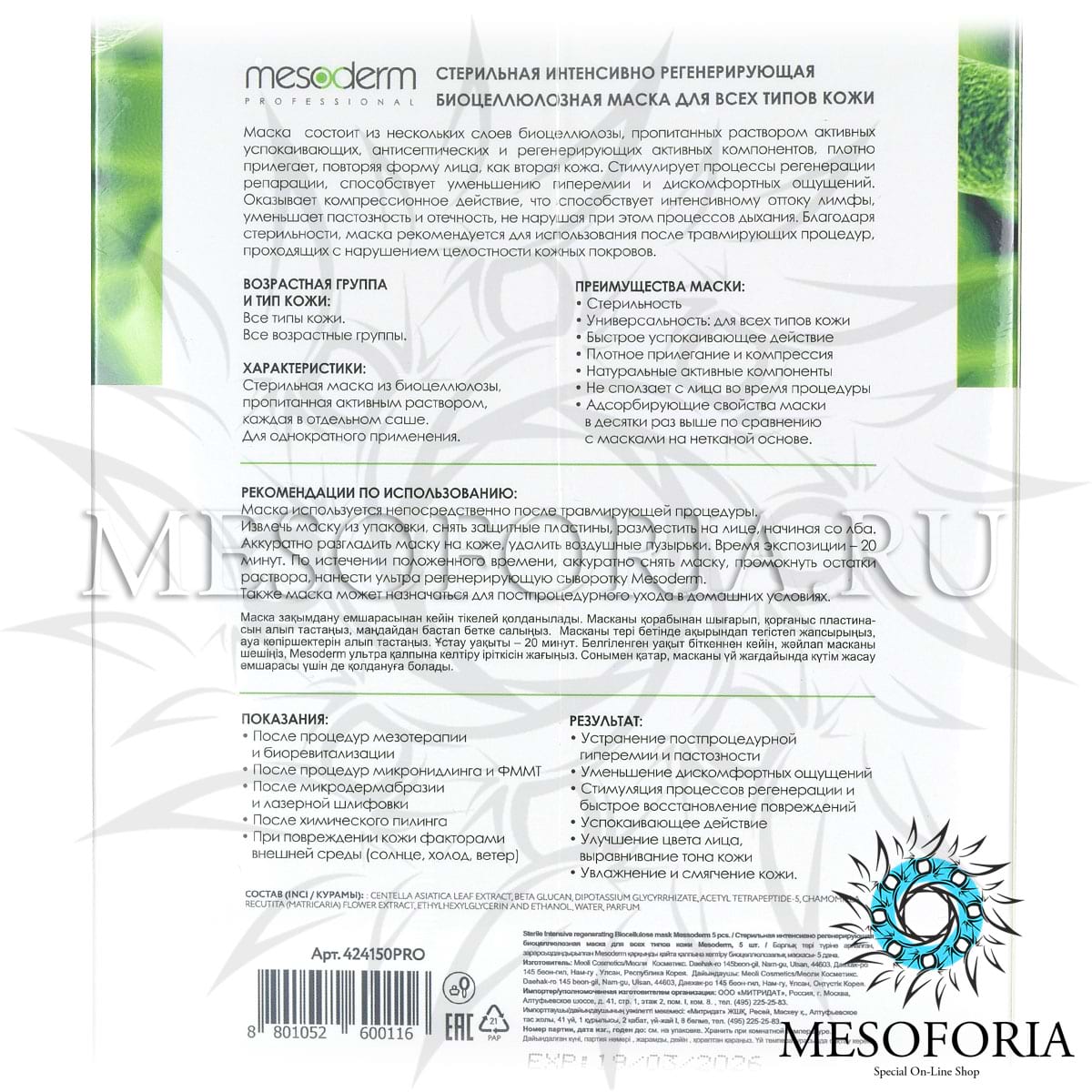 Интенсивно регенерирующая биоцеллюлозная маска после процедур стерильная Mesoderm (Мезодерм), 5 шт (упаковка)