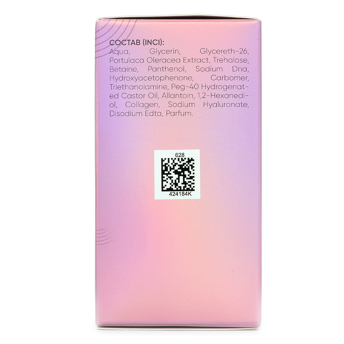 - PDRN (Sodium DNA) — биотехнологический компонент, получаемый из очищенной ДНК лосося. Обладает выраженным регенерирующим действием, активизирует фибробласты и стимулирует синтез структурных белков — коллагена и эластина, а также гликозаминогликанов, отвечающих за плотность и упругость кожи. PDRN способствует реструктуризации тканей, улучшает микроциркуляцию, ускоряет восстановление и повышает биомеханические свойства кожи, делая ее более гладкой, упругой и сияющей.