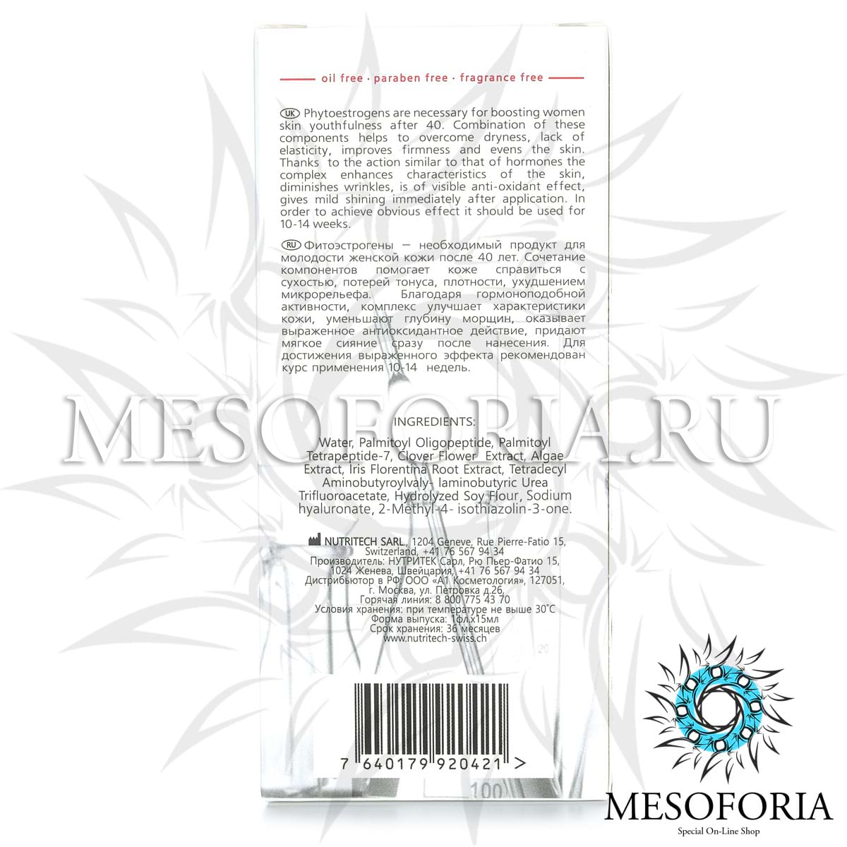 Фитоэстрогены – необходимый продукт для молодости женской кожи после 40 лет. Сочетание компонентов помогает коже справиться с сухостью, потерей тонуса, плотности, ухудшением микрорельефа. Благодаря гормоноподобной активности, комплекс: улучшает характеристики кожи, уменьшают глубину морщин, оказывает выраженное антиоксидантное действие, придают мягкое сияние сразу после нанесения.