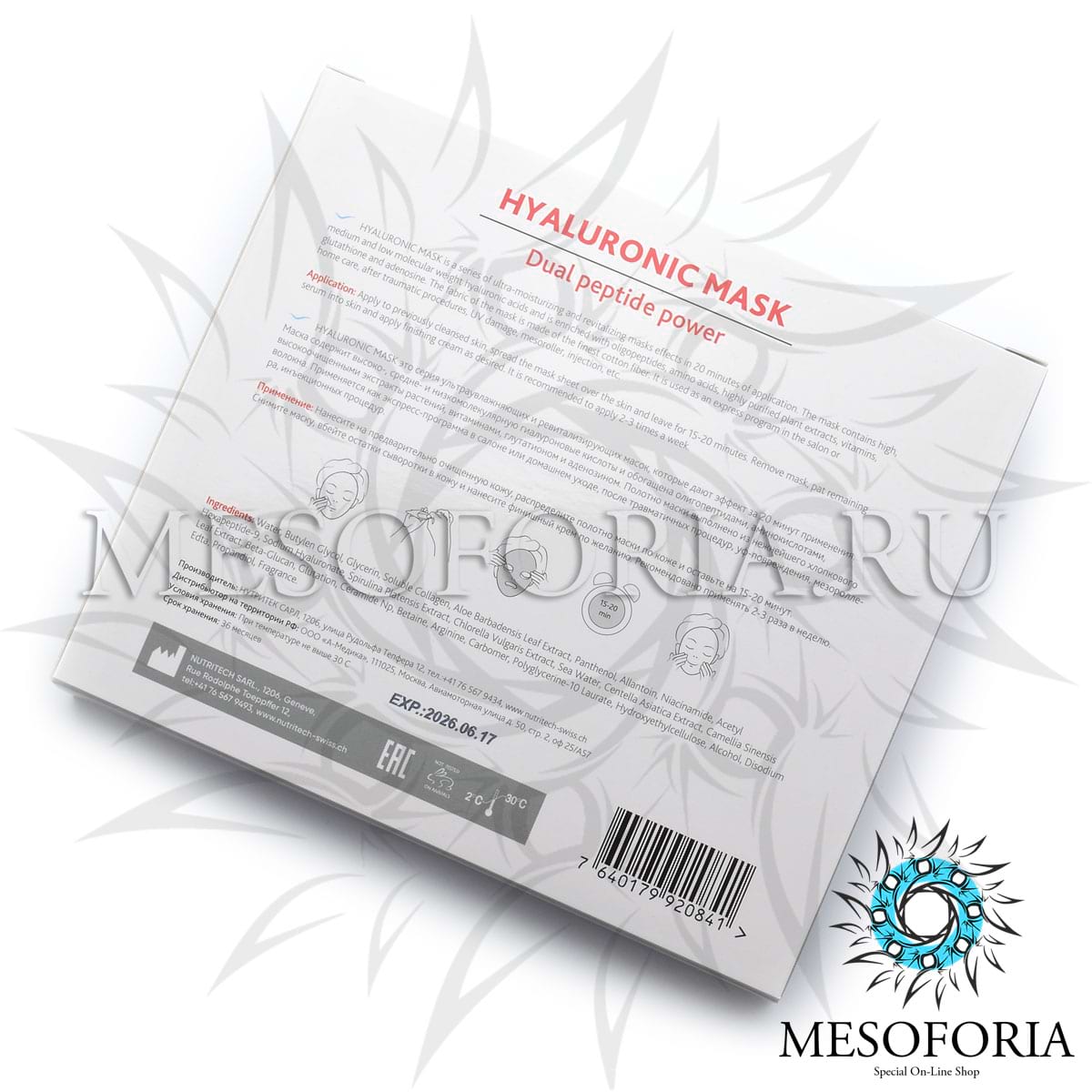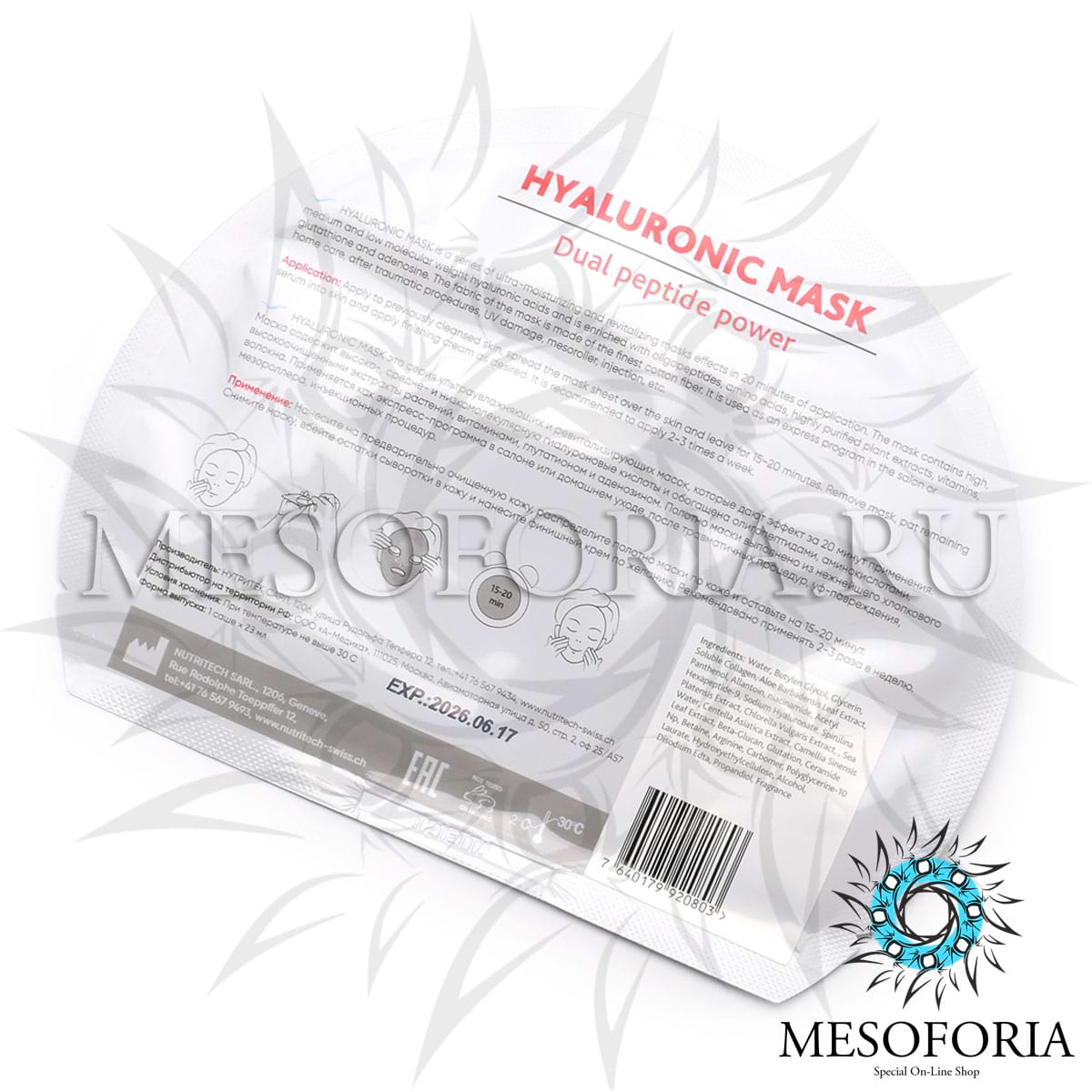 Hyaluronic Mask это серия ультраувлажняющих и ревитализирующих масок, которые дают эффект за 20 минут применения. Маска содержит высоко-, средне- и низкомолекулярную гиалуроновые кислоты и обогащена олигопептидами, аминокислотами, высокоочищенными экстракты растений, витаминами, глутатионом и аденозином. Полотно маски выполнено из нежнейшего хлопкового волокна. Применяется как экспресс-программа в салоне или домашнем уходе, после травматичных процедур, уф-повреждения, мезороллера, инъекционных процедур.